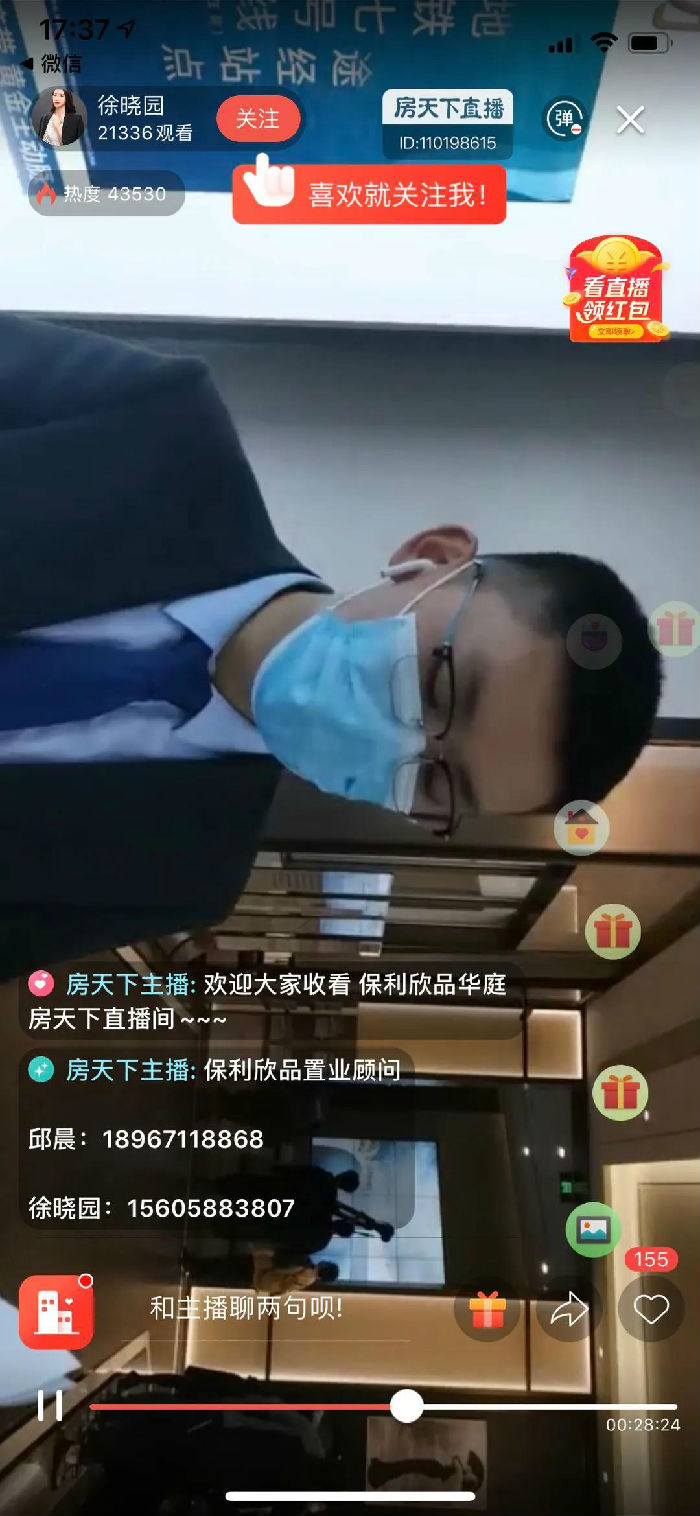 上午不到10点,便不断有客户登陆直播平台,关注人数持续飙升,主播还没出现时,翘首以待示范区和样板房开放的评论就开始刷屏。